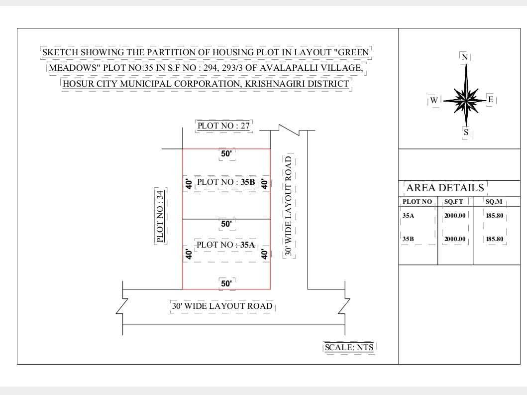 *Plot no.35A- 40Ft X 50 Ft =2000 SFT (4.09 Cents) Corner plot South and East sides Road available